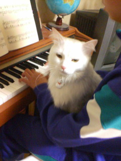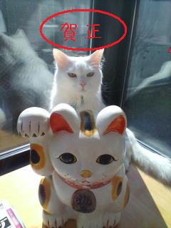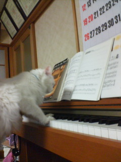 年が明けて・・・2010年になってしまった・・・。 といっても俺様には年末の忙しさも、 新年ののんびりもした感も関係ない・・・。 あゆちゃん:「そうだよね、レオ君は一年中 お正月みたいなもんだもんね・・・。」 レオ君 :「・・・?一年中お正月?」 あゆちゃん:「だって、毎日食っちゃ寝・食っちゃ寝 ばっかりじゃん・・・。」 レオ君 :「・・・。そぉかぁ・・・。毎日正月か!! じゃ 毎日お年玉のまたたびもらえる!!」 あゆちゃん:「・・・。ちょっと違うと思うけど・・・」 こんな感じであゆちゃん一家も新年を迎えました・・・。 今年は、皆さんの “招き猫”になります! トラは猫科だから・・・。 俺様も「ホワイトタイガー」に なってみた!! なかなかのものだろ・・・。 お年玉は、大好きな またたび!! こんな感じですが、本年もあゆちゃん一家を 宜しくお願いいたします!!(=^・・^=) 以前俺様は、ピアニストになって あゆちゃん:「・・・・。そんな事だと思った!! やる気満々気分は ピアニスト!!!!! 今の俺様・・・・。 にぃに:「レオ、ピアノの練習するぞ!!」 れお君:「俺様もぉ、やだ!!!」 あゆちゃん:「やっぱり、猫は気まぐれだね!!!」 レオ君 :「・・・・・。」何も言えないレオ君でした。